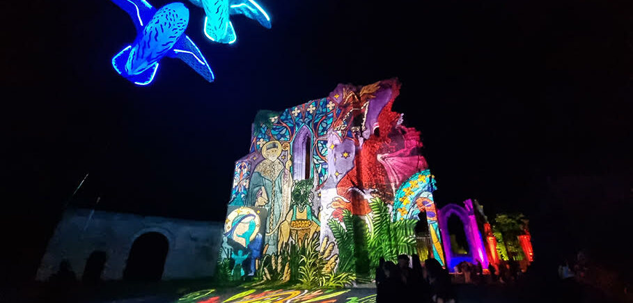 Plusieurs sites archéologiques des Charentes mis en lumière et en images pour valoriser l’histoire et la biodiversité. Mise en lumière Conception et réalisation du mapping avec images Pani peintes fixes